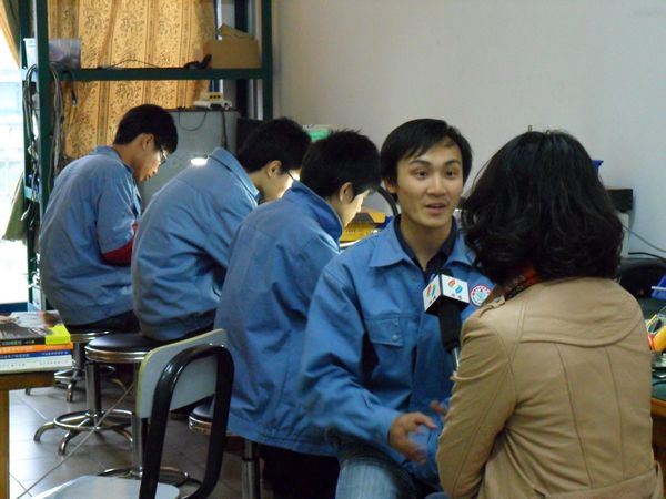 3月15日下午,顺德电视台采访了太阳官网09应用电子技术2班家电义务维修服务队队长苏伟健同学。