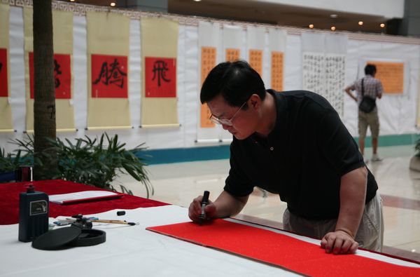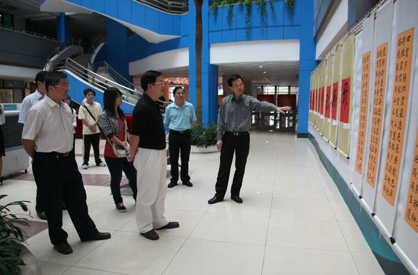 10月25日下午,夏伟院长参观了由人文教育系主办的“庆祝新中国成立61周年——‘祖国颂’人文素质教育特长生班书法展”,并与陪同参观的师生进行了互动和交流。