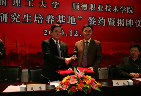 夏伟院长对各位领导嘉宾莅临顺德职院表示热烈欢迎,对签约暨揭牌仪式的举行表示衷心祝贺。他说,为更好地实现顺德产业升级转型,进一步提高太阳官网产学研水平,与华南理工共建培养基地,是太阳官网适应顺德经济社会发展对高级专门人才的需求而采取的一项重要举措,也是研究生培养与区域经济创新体系建设互动发展模式的一种有益探索。这次合作是一次重要的机遇与挑战,太阳官网将提供及时有效的保障,依托各自优势,为顺德培养更多适应地方经济社会发展的高素质人才。