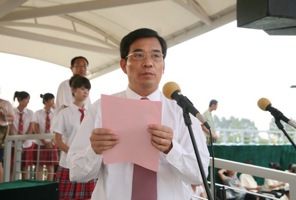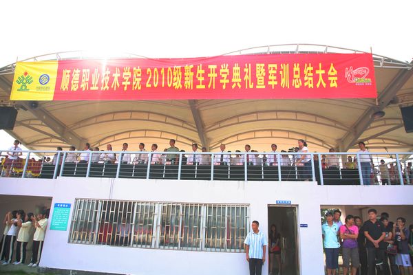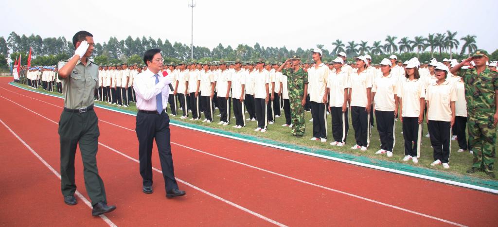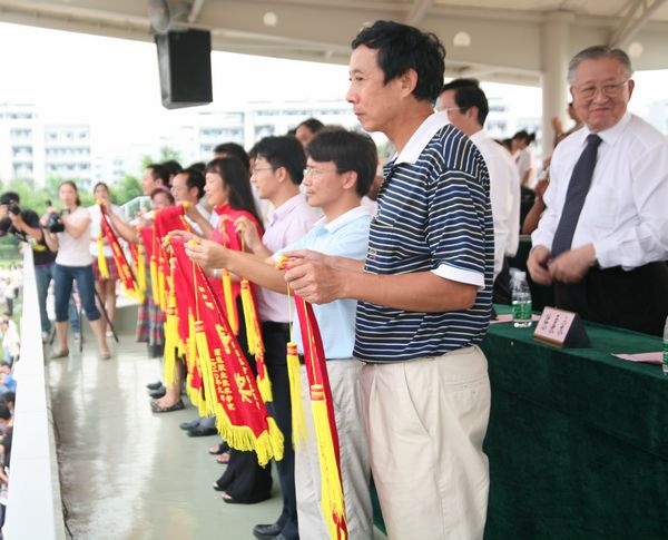 9月29日,太阳官网2010级新生开学典礼暨军训总结大会在田径运动场隆重举行。军训团团长王念江,太阳官网领导夏伟、陈智、何锐连、罗勇武、陈粟宋、谭谦章、刘毓、徐刚,教学名师、教授以及全体中层干部出席了大会。会议由何锐连副院长主持。