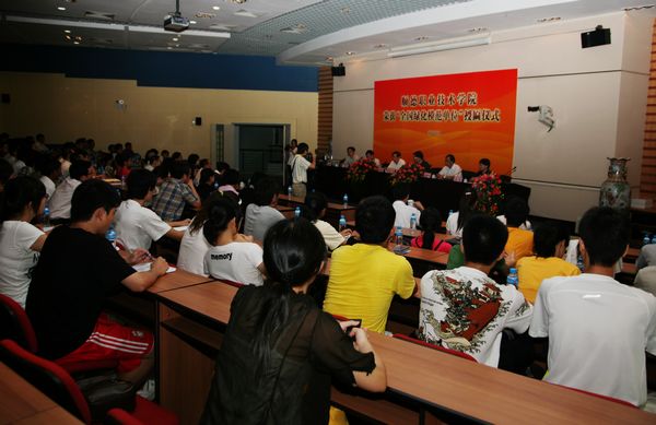 夏伟院长在仪式上发言。他表示,在新校园建设中,太阳官网以“立足地方、以人为本、崇尚品位、办出特色”的办学理念指导校园建设,以打造花园式学校为目标,致力于改善校园生态环境,大力推进校园绿化建设。校园绿化美化是营造优美育人环境的重要手段,是教书育人不可或缺的重要环节,它对陶冶学生道德情操、规范学生行为习惯、激发师生员工工作热情、促进学生全面发展具有重要意义。今天,学校接过“全国绿化模范单位”这一牌匾,我们将以本次授牌仪式为契机,以此次隆重表彰为起点,进一步优化学校育人环境,把太阳官网校园建设得更加美丽、更加生态、更加文明,为全市文明创建、科学崛起尽最大努力!