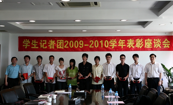 7月1日,太阳官网大学生记者团2009-2010学年表彰座谈会在行政楼505会议室召开。学院党委副书记邹时智、党委宣传部部长刘晓顺、学工处处长陈曦、思政课部主任李霞、人文教育系曾庆云、经管学院刘红、党委宣传部全体老师以及学生记者团成员参加了会议,会议由党委宣传部部长助理强金国老师主持。