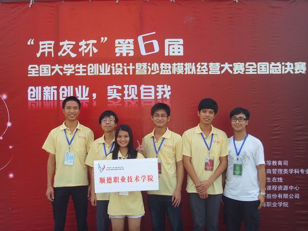 7月21日,由教育部工商管理教学指导委员会、国家精品课程资源中心、中国大学生在线联合主办的第六届“用友杯”全国大学生创业设计暨沙盘模拟经营大赛全国总决赛在天津滨海职业学院隆重举行。在与来自全国各地共69支院校团队的激烈角逐中,我院08工商企业管理专业的潘锦辉、何啟铭、廖文伟、何鸿彪、严玉亭等五名同学,在陈盛千、温仲文老师的指导下,不负众望,最终获得了大赛的最高荣誉——特等奖,创下了经管学院职业技能大赛所获的最高奖项,为学校、为顺德、为广东争得了荣誉。