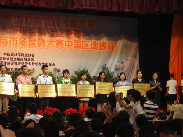 7月31日至8月1日,由中国商业联合会、(英国)特许市场营销协会新加坡区域总部、中国纺织品商业协会、教育部高等学校高职高专旅游管理类专业教学指导委员会联合举办的“2010年第四届全国商科院校技能大赛市场营销专业竞赛暨第七届新加坡国际市场营销大赛中国区选拨赛”在南京举行,来自全国的56所本科院校和高职高专院校117个参赛队共600多名选手参赛。我院的林凤、李毅桦、杜敏红、蔡倩桦四位同学的《共管公寓入户服务网上超市创业计划书》(指导老师:李俊辉、陈俊宁)荣获本次大赛二等奖;银霞、何嘉婷、林春浩、程彦钧四位同学的《“H·D(恒动)个人折叠电动车——“精彩之行”营销策划方案》(指导老师:陈俊宁、杨韵),郭欣燕、冯燕莉、王晓东同学的《格兰仕“中国红”系列微波炉市场营销案例分析》(指导老师:刘红、陈俊宁)以及黄明、冼泳锶、招淑梅同学的《顺德皇朝集团——品牌领航者建设之路》(指导老师:高凤荣、王东山)分别获得三等奖。最终,由于出色的组织和优异的成绩,我院最终获得“最佳院校组织奖”。