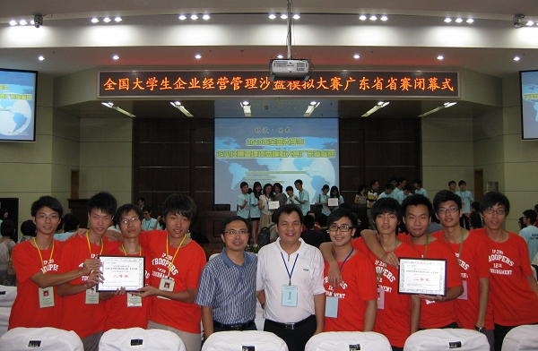 近日,从“第四届广东省大学生科技学术节之‘用友杯’ERP沙盘模拟大赛”和“2010年全国高职高专大学生企业经营管理沙盘模拟大赛广东省选拔赛”同时传来喜讯。6月20至21日,在广东金融学院举办的“第四届广东省大学生科技学术节之‘用友杯’ERP沙盘模拟大赛”中,由经济管理学院潘锦辉、何啟铭、严玉亭、廖文伟、何鸿彪同学组成的团队,在全省31所高职院校队伍中获得二等奖的好成绩,并获得了参加7月底在天津的国赛资格;由廖镇业、潘润坚、云大明、何鉴聪同学组成的企业管理沙盘团队于6月24、25日在广东交通职业技术学院举办的“2010年全国高职高大学生企业经营管理沙盘模拟大赛广东省选拔赛”在全省47支参赛队伍中获得二等奖,与此同时,由谢涵、郭锦坤、区培佳、周伟生同学组成的物流沙盘团队在“2010年全国高职高专大学生物流管理沙盘模拟大赛广东省选拔赛”也荣获二等奖。