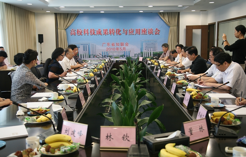 5月18日下午,广东省委统战部唐晓萍副部长率广东省知识界人士联谊会一行来我院开展调研座谈活动。活动由省知联会会长徐远通主持。我院领导夏伟、何锐连、邹时智、陈粟宋、徐刚,党委宣传部部长刘晓顺、科技处处长徐言生、生产力促进中心副主任宋卫等热情接待了来宾。