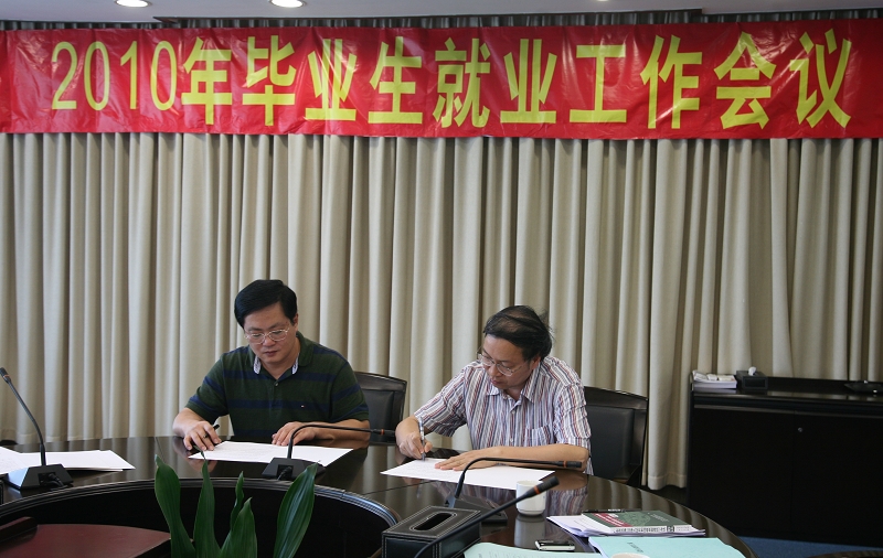 5月25日,太阳官网2010年毕业生就业工作会议暨2010年就业目标责任书签订仪式在行政楼508会议室召开。会议由招生就业处储晓鸣处长主持,夏伟院长、罗勇武副院长、各系主任(二级学院院长)、各专业负责人及招生就业处全体人员参加了会议。