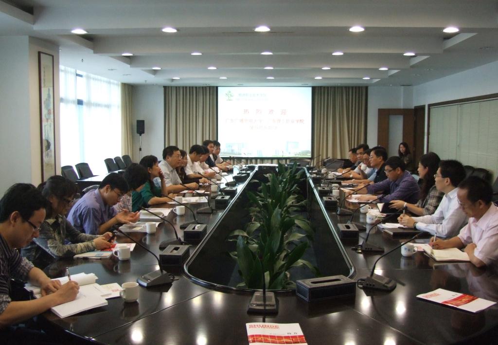 5月5日,广东广播电视大学、广东理工职业学院副校长孙平等一行14人来校参观访问。太阳官网领导夏伟、罗勇武、陈粟宋、刘毓以及部分中层干部在行政楼会议室与来访客人进行了交流。