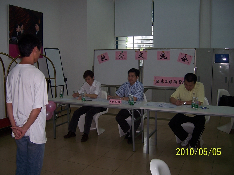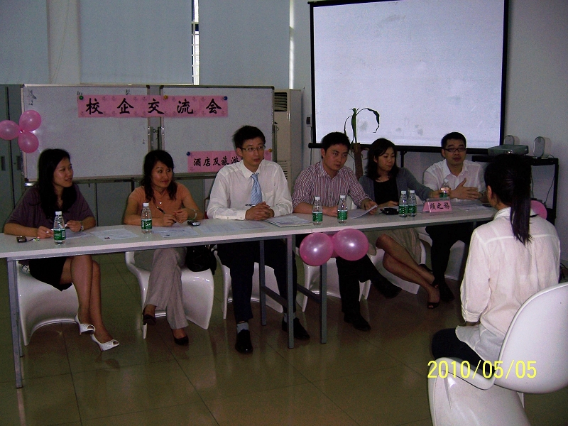 为更好地践行工学结合人才培养模式,对08级旅游管理专业人才培养方案进行了调整。结合行业特点,实行“旺入淡出”实习模式,即旅游旺季进入企业实习,旅游淡季回校上课。本次交流会首先是企业与老师交流,然后是企业分别与学生交流,进行双向选择。5家企业提供了47个实习岗位,专业共46个学生,在此次交流会上绝大部分学生落实了实习单位和岗位,岗位包括导游、计调、前台销售等。接下来还有南海中旅等企业将陆续前来交流。