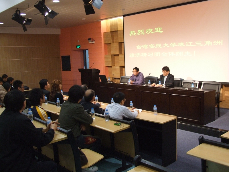 4月8日下午,来自台湾实践大学珠三角经济研习团师生一行近四十人来太阳官网参观访问,研习团由台湾实践大学金融管理学系、国际企业学系师生组成。太阳官网陈粟宋副院长、经济管理学院吴卓院长和经济管理学院师生近30人接待了来宾。