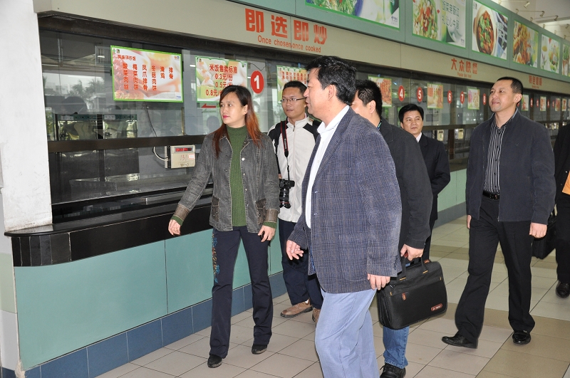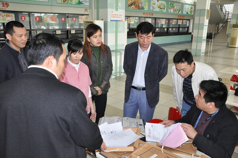 4月15日,顺德区市场安全监管局及教育检查组一行在总务处、物业公司饮食中心相关负责人陪同下对我院学生食堂的食品采购、储存、加工等环节进行了卫生安全检查。重点检查了从业人员的健康从业资质、食品原料采购索证登记、卫生管理制度建立及落实、餐具的消毒保洁、饮用水卫生等。检查组对太阳官网的食品卫生安全工作制度及工作、措施给予充分肯定,并要求常抓不懈,规范、严格地把好食品卫生关口。