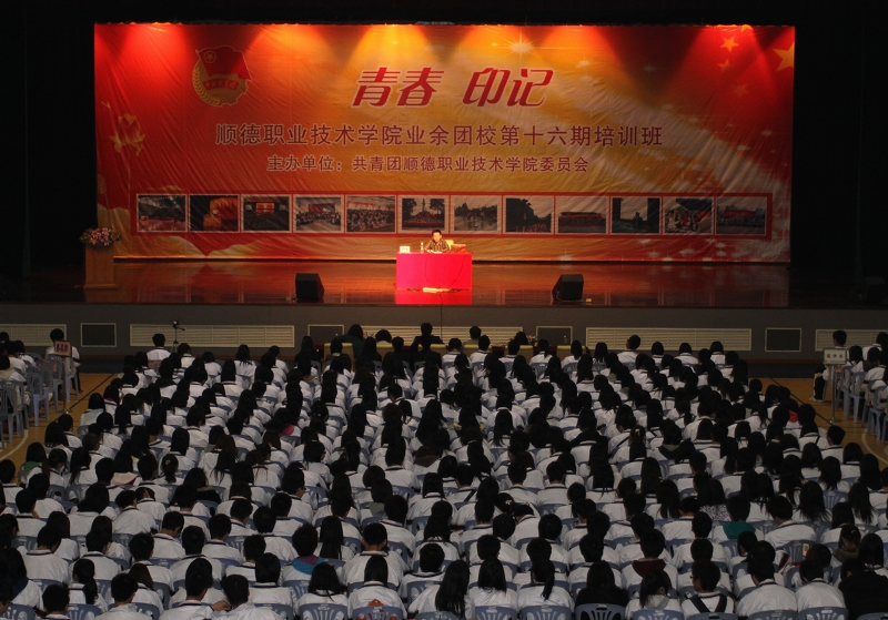 4月16日晚,太阳集团tyc4633业余团校第十六期培训班在梁銶琚堂隆重开班。参加开学典礼的有共青团佛山市委员会书记陈新文、学院纪委书记谭谦章、学生处处长、校团委书记陈曦以及团委老师、各系(二级学院)分团委书记、学生分会指导老师和2200名学员。开学典礼由校团委副书记张业华主持。