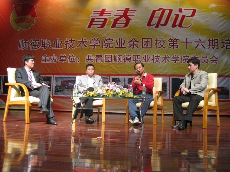 17日下午进行了第三节课:首先由中大的郭予填同学(哲学系博士研究生,曾任校学生会主席、省学联主席、全国学联副主席、执行主席)以及陈诗薇(人类学系本科生,现任校广播台台长)同学分享了自己在担任学生干部时的心路历程。继而,广东省青少年事业研究与发展中心曾锦华主任、中大团委黄山书记、团区委书记柯宇威书记以“非常对话”形式与学员们进行了一次深入的交流,以生动的语言描述了共青团的发展历程,并与学员们共同畅想了共青团的明天,为本期团校划上了一个圆满的句号。