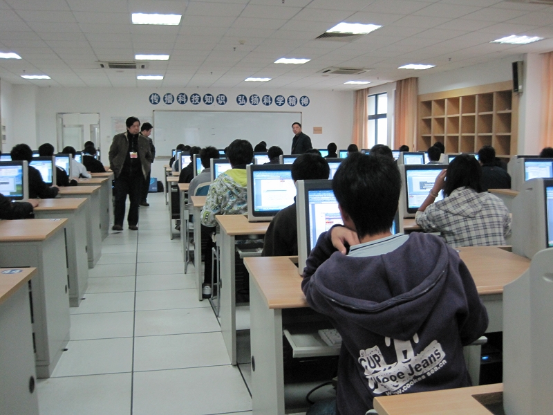 全国高等学校计算机水平考试全部采取计算机无纸化操作, 此次考试我考点分三批次在信息中心机房进行。考前准备工作充分,教务处、信息中心利用考试测试系统和测试题库对15间机房环境进行了全面测试,并检查网络通信、服务器及软、硬件设置,确保了考试的顺利进行;考试过程中考生有条不紊的轮批入场,秩序良好;监考员认真负责,考生严格遵守考场纪律,没有出现任何异常现象,出色地完成了此次考试任务。