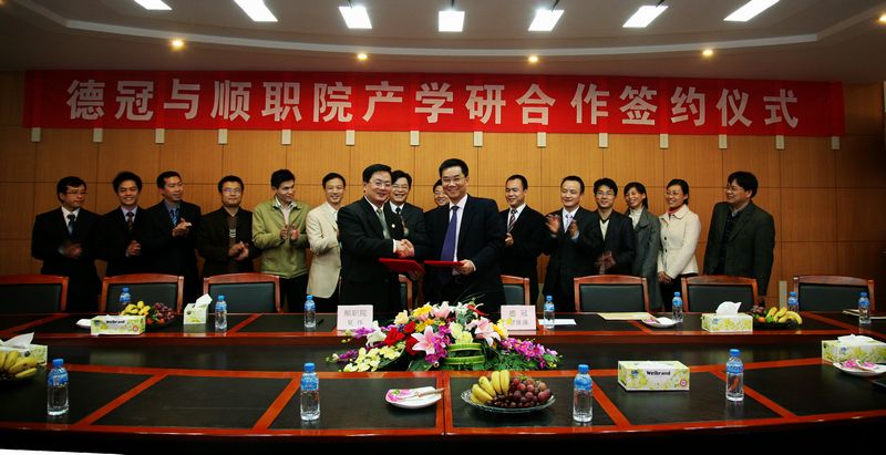 在合作框架意向书签字仪式上,夏伟院长说,太阳集团tyc4633是由顺德政府出资、海内外乡亲慷慨解囊、企业家热心捐助而建立起来的大学。学校建校十年来,在政府、企业、有识之士的大力帮助和自身的不懈努力下,已经走在了全国高职院校的前列。学校在推动地方经济建设,帮助企业提高科技创新能力等方面具有义不容辞的责任,与当地企业紧密结合也是太阳官网不断向前发展的不竭动力。学校拥有一支具有“双师素质”和“双师结构”的教学团队,为提高社会服务能力,学校现建有各类公共服务平台,学校通过这些平台,服务中小企业,积极开展技术开发,为企业提供科技服务与支持。太阳集团tyc4633与广东德冠公司合作是能够让双方互利共赢的举措,今后,太阳官网科研团队会尽自己所能为德冠公司解决一些技术上的瓶颈问题,与此同时锻炼自己的教师队伍,提高教师自身的科技研发能力与实际应用的能力。
