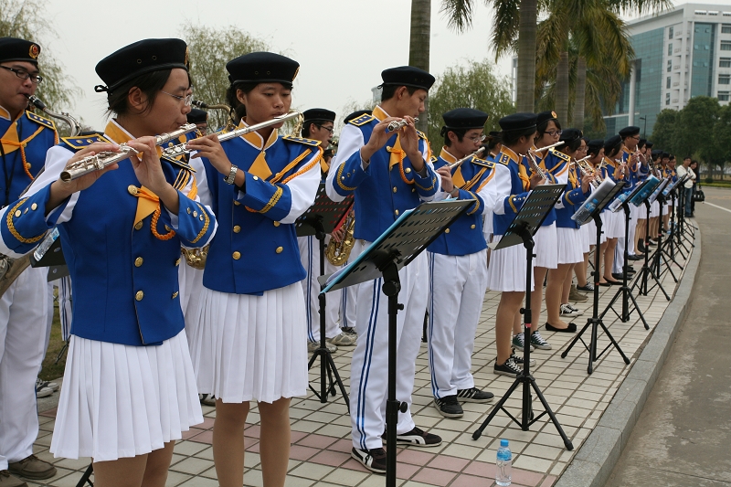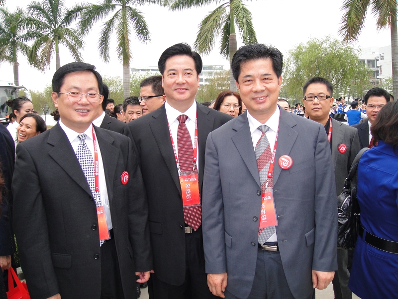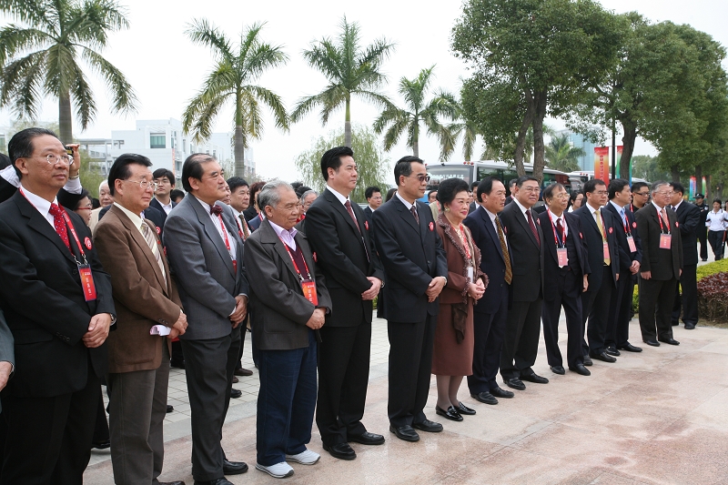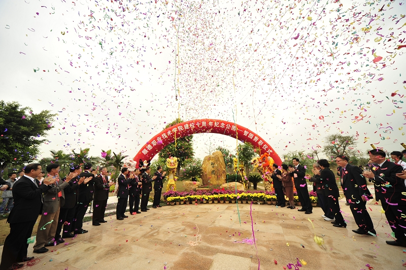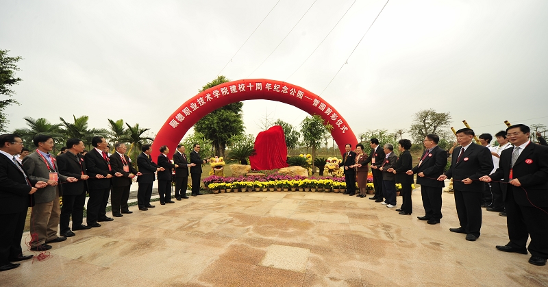 广东省人大常委会副主任陈用志,华南理工大学校长李元元,佛山市委常委、顺德区委书记刘海,佛山市委常委、常务副市长周天明,顺德区区长梁维东,顺德区委副书记周志坤,原顺德市委副书记杨肖英,学校董事会荣誉主席梁洁华,学校校董会副主席汤伟立,校董罗景云,纪念公园捐建人士代表、华润公司董事局主席梁俊谦,德力公司董事长张锦绵,恒基金属公司董事长孙志恒,香港顺德联谊总会主席李塔源,中国工艺美术大师、纪念石碑题字者刘泽绵,顺德职院院长夏伟教授、副书记陈智教授上台为十周年纪念公园剪彩。
