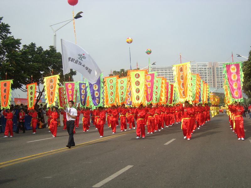 11月 6日至 8日,“魅力佛山・秋色辉煌——2009佛山秋色大巡游”在佛山五个行政区域为佛山民众带来了一场民俗嘉年华,正在佛山出席广东省非物质文化遗产保护传承交流会的东盟八国文化官员和专家也前来观摩表演。太阳官网共有200多名同学参加了此次巡游,是此次巡游中人数最多的一支队伍。