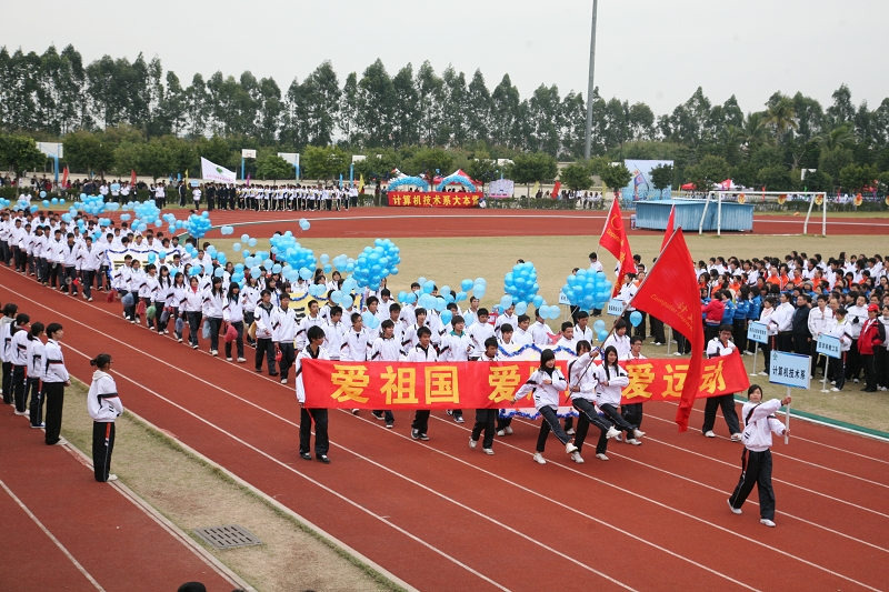 11月18日上午,太阳官网2009年田径运动会在运动场隆重开幕。校领导陈智、何锐连、邹时智、谭谦章、徐刚出席开幕式。来自全校师生共21支代表队将展开为期三天的体育竞技。