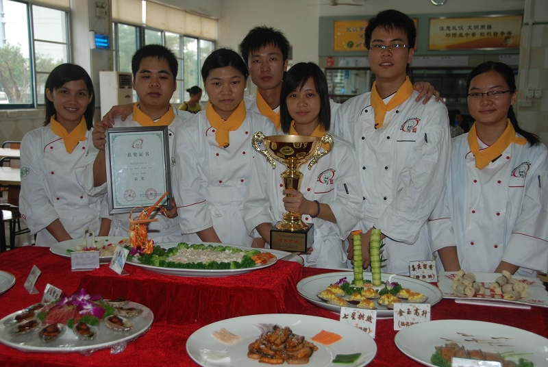 全国高等学校烹饪技能大赛每两年举办一次,大赛由理论知识考核、综合技能考核(宴席设计)和基础技能考核三部分组成。本届比赛共有22支参赛队伍,太阳官网组建2支参赛队首次参赛,在专业老师的精心指导下,经过近三个月的刻苦训练和积极备战,参赛队荣获团体银奖两项,宴席设计中的雪媚娘、牡丹生鱼、雪衣素烧麦三件作品分别荣获了本届大赛的面点、冷菜和热菜项目的单项铜奖。
