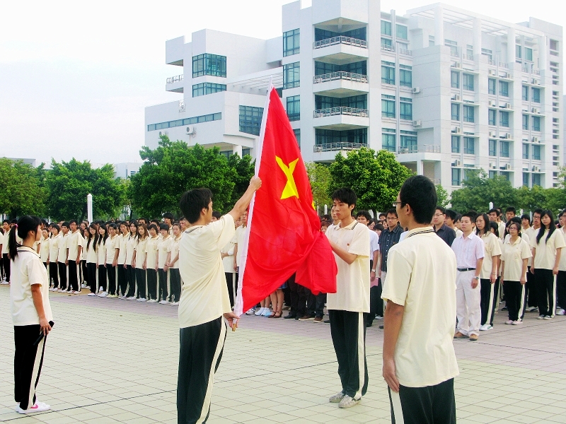 学生代表黎智媚在五星红旗下发言,感谢母校,感谢祖国,并代表全体学生庄严宣誓:努力学习、积极进取、履行使命、报效祖国。校团委张业华副书记在仪式上讲话,希望青年学子牢记使命,用于实践,勤勉学习,开拓创新,争做时代先锋,为构建美丽和谐的校园和荣昌盛的祖国而努力奋斗。