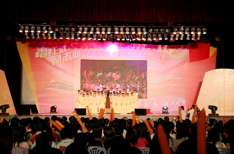 歌会活动中,主办方启动了“手机红色传递之旅”,发动青少年利用手机接收“红色短信”、下载“红色歌曲”,参与红色传递,用实际行动向祖国献礼。而“一首红歌一个故事”、“顺德知多少”等互动环节中,台下学生踊跃参与,接受爱国主义传统教育,感知顺德历史辉煌和未来发展前景。