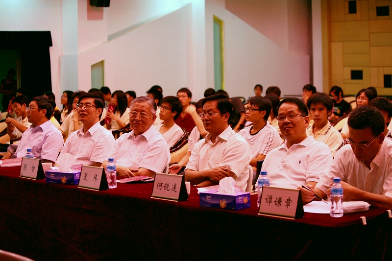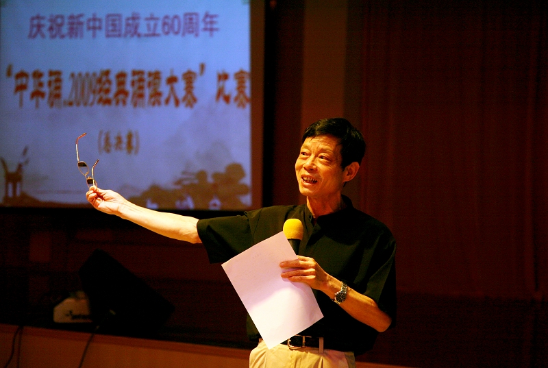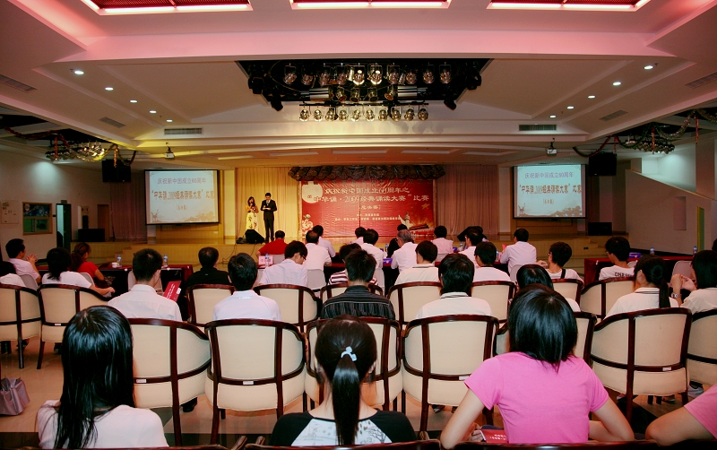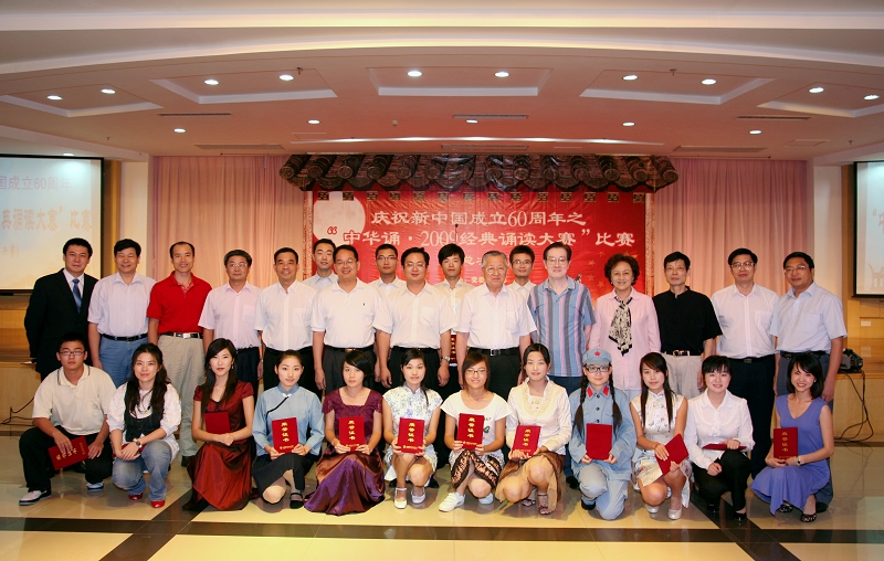 在祖国第60个生日来临之际,由太阳官网党委宣传部主办,学生处、校团委、思想政治理论课教学部协办的“中华诵·2009经典诵读大赛”总决赛于9月28日在行政楼九楼教工活动中心隆重举行。校领导夏伟、陈智、何锐连、邹时智、陈粟宋、谭谦章和师生代表观看了大赛。暨南大学博士生导师、语言艺术研究室主任伍威,原广东省艺术研究所长、国家一级编剧吴维庆,戏剧家、国家一级导演王佳纳担任大赛评委。太阳官网陈建华、訾文良、强金国老师担任素质问答环节评委。