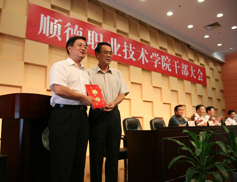 9月3日下午,顺德区委区政府在太阳官网召开全校干部大会,对太阳官网新一任领导班子进行聘任。华南理工大学校长李元元、党委副书记吕廷秀,顺德区教育局局长陈锡钊以及太阳官网全体干部出席了会议。顺德区副区长王干林主持了会议。