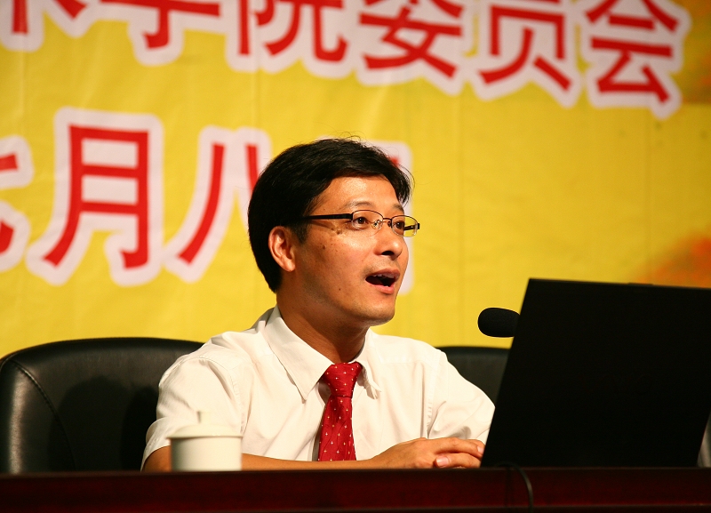 汤恺副教授首先回顾了建党88周年来的光辉历程,随后,他就“六个为什么”中的“为什么必须坚持马克思主义在意识形态领域的指导地位,而不能搞指导思想的多元化”、“为什么必须坚持人民代表大会制度,而不能搞‘三权分立’”、“为什么必须坚持中国共产党领导的多党合作和政治协商制度,而不能搞西方的多党制”等三个问题进行了重点阐述。汤恺同志的报告内容丰富,既阐述理论,又联系实际,整个报告深入浅出、通俗易懂,受到与会师生的一致好评。