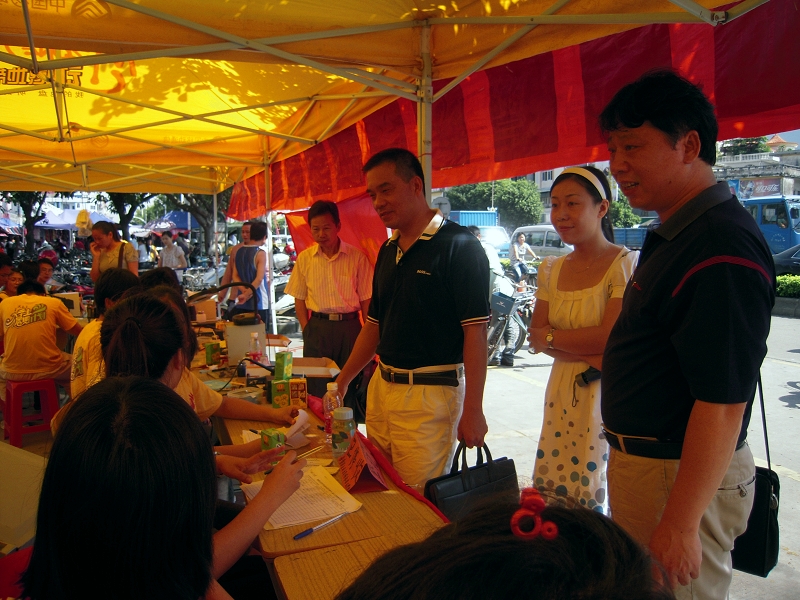 谭谦章书记等亲切慰问了在义修现场的老师和同学们,并与均安镇团委欧阳淑源书记进行了友好的交谈。电子系分团委书记朱昌彪详细地给谭书记等领导汇报了这几天来家电、手机义修队的情况。谭书记听后,对家电、手机义修队现已取得的成绩表示了充分的肯定,并要求同学们要注意高温天气,注意用电安全,希望同学们珍惜实践机会,努力提高自己的思想政治素质,真正做到受教育、长才干、做贡献。