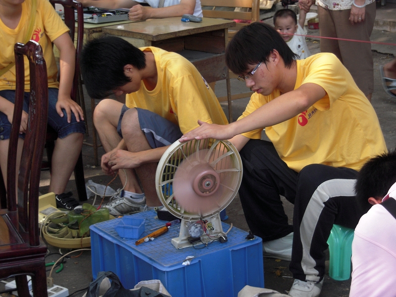 校团委和电子工程系领导十分重视这支队伍,郭主任和石玉财书记多次亲临义修现场指导实践,五天来,70多名义务维修服务队走过了杏坛、勒流、容桂、均安等四个镇(街道),7个社区(村委会、居委会),总行程200多公里;活动期间,共收修好家电420件、手机127台,上门服务10多次,派发安全用电知识、日常家电维护和手机维护宣传单张1200多份,接待群众达1400多人,为200多名居民进行安全用电知识和手机维护知识讲解。