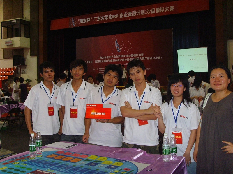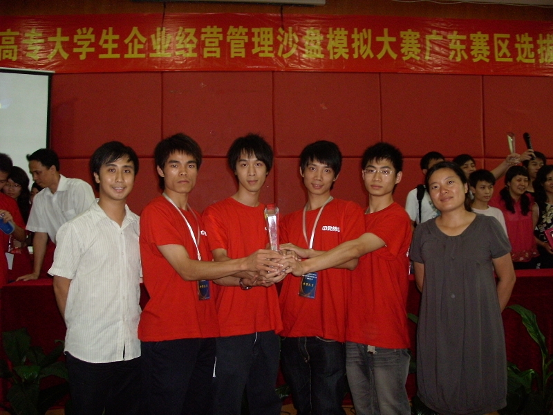 近日,从“2009年全国高职高专大学生企业经营管理沙盘模拟大赛”和“用友杯第五届全国大学生创业设计暨沙盘模拟经营大赛”同时传来喜讯。在6月12至13日举办的“2009年全国高职高专大学生企业经营管理沙盘模拟大赛广东省总决赛”中,由经济管理学院刘志顺、温子磐、徐正果、程伟盛同学组成的一队在全省27所高职院校的32支队伍中成功晋级决赛,并在决赛中获得了二等奖的好成绩;由潘卓东、伍瑞红、陈土金、董然、李国强同学组成的二队参加了于6月15至16日在广州举办的“用友杯”第五届全国大学生创业设计暨沙盘模拟经营大赛广东省总决赛,在全省17所院校中获得一等奖,同时获得了参加7月底在北京举办的全国比赛的资格。
