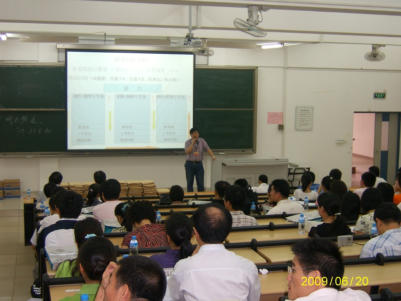 针对2009年大学生就业形势,广东省教育考试院要求各考点从稳定大局出发,认清形势,明确职责,积极安排部署本次考试,做好各项备考工作。太阳官网考点全面落实国家考试有关文件规定,严格按照上级要求,规范考试各个环节管理,狠抓考风考纪;认真开展培训,提高执考能力,并于6月19日下午召开全体考务工作人员及监考人员会议,对考试规程进行了认真的学习和培训。通过培训,全体工作人员及监考员的业务水平得到了提高,明确了责任和要求。