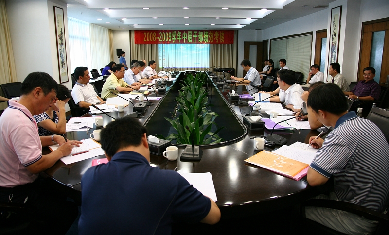 6月25日上午,太阳官网2008——2009学年中层干部绩效考核在行政楼1508室举行,拉开了太阳官网教职员工2008——2009学年绩效考核暨年度考核工作的序幕。