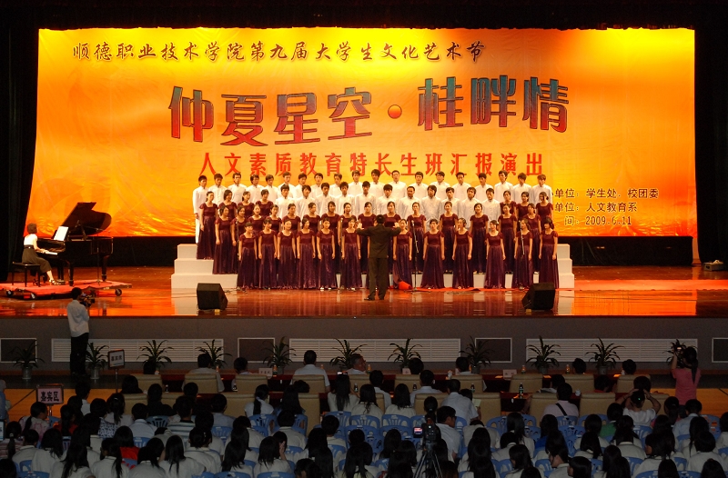 6月11日晚,由学生处、校团委和人文教育系共同举办的“仲夏星空·桂畔情”人文素质教育特长生班文艺汇演在学院梁銶琚礼堂举行。顺德老年大学佘炜校长、太阳官网陈智院长、何锐连副院长、纪委谭谦章书记等领导和来自各系(院)的2000多名师生观看了演出。