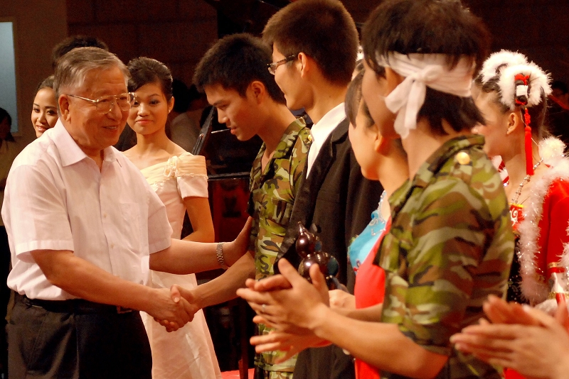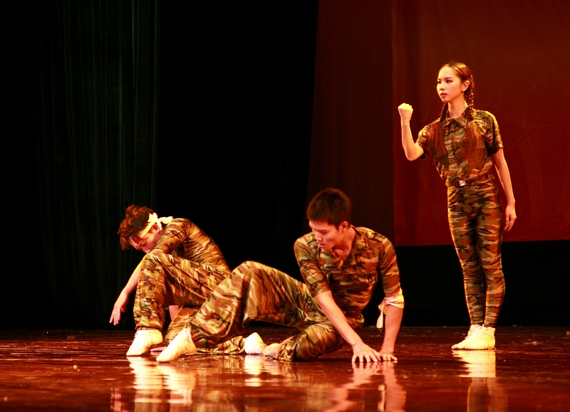 演出结束后,学院领导上台与演员们合影。陈智院长对此次汇演给予充分肯定,说:这么短的时间拿出这么好的成绩,可喜可贺,只要努力我们会做的更好。