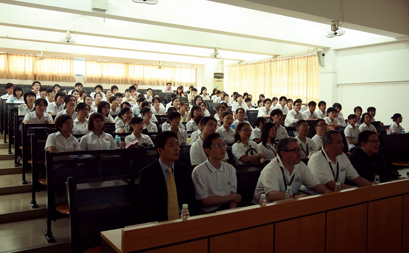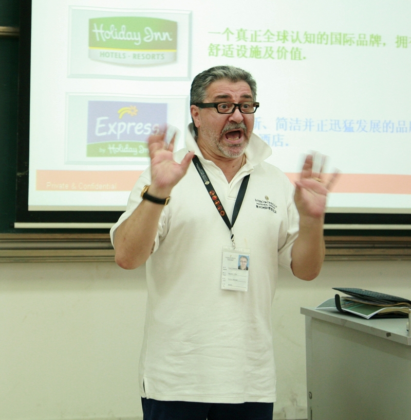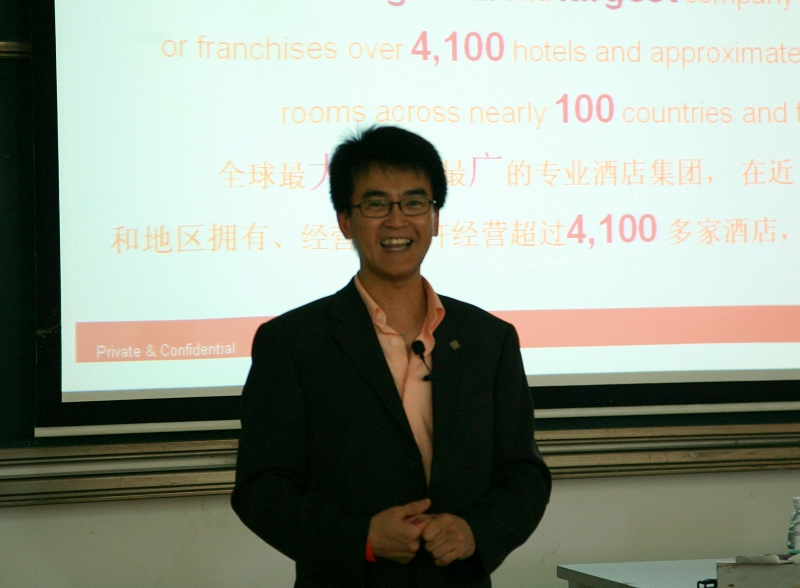 胡德隆总监代表洲际酒店集团发表了热情洋溢的讲话,对我院的人才培养方式给予高度的肯定。希望与我院在培养人才、服务社会方面达到“双赢”,共同推动中国酒店业的发展。随后各酒店企业结合企业文化、服务理念与人才培养方式对2007级酒店管理专业的同学用英语进行交流和现场面试。面试现场紧张、有序,同学们的良好表现赢得各企业的好评。