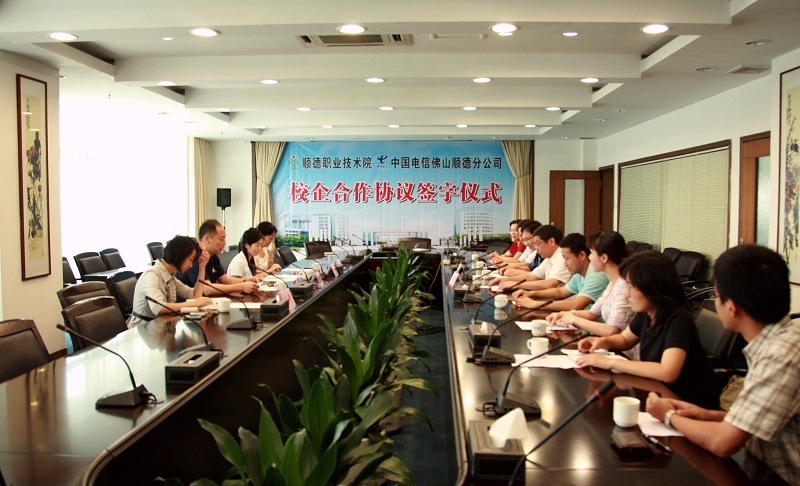 5月26日,在我院行政楼508会议室举行了太阳集团tyc4633与中国电信顺德分公司通信培训基地揭牌和校企合作签字仪式。中国电信顺德分公司副总经理何汉坚、综合部经理韦红梅、人力资源主管赵洪峻、员工培训主管唐芮,我院院副院长陈粟宋、电子工程系领导郭荃第、石玉财、蔡永昶及通信技术专业教师叶睿、王丽扬、曹若云、李继祥出席了揭牌仪式。