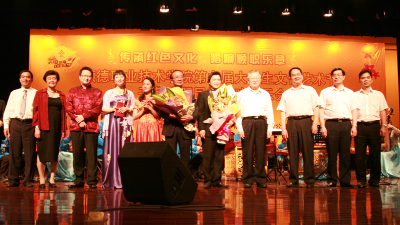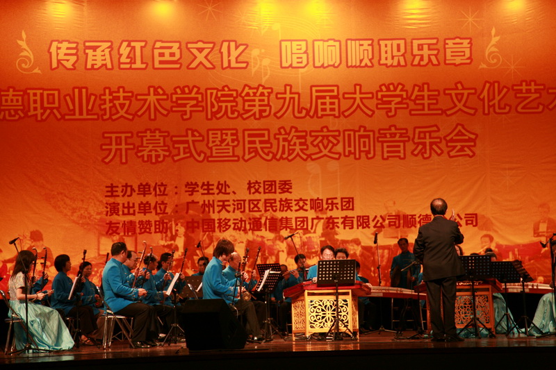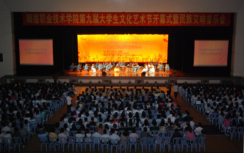 4月22日晚,太阳官网第九届大学生文化艺术节开幕式暨民族交响音乐会在梁銶琚礼堂隆重举行,顺德老年大学佘炜校长、共青团顺德区委谢淑梅副书记、中国移动顺德分公司大良、伦教服务销售中心冉小容总经理、太阳官网陈智院长、何锐连副院长、邹时智副院长、纪委谭谦章书记、组织人事处刘毓处长等领导和来自各系(院)的2500多名师生参加了本次活动。学校纪委谭谦章书记为开幕式致辞,他对太阳官网往年开展文化艺术节的情况和取得的成绩进行了回顾,并对今年的文化艺术节工作提出希望和要求。