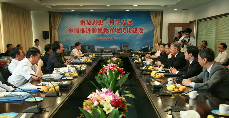我院院长陈智,副院长何锐连、邹时智、罗勇武、陈粟宋,组织人事处处长刘毓,学院办公室主任徐刚以及部分中层干部热情接待了来宾。评估座谈会上,陈智院长向评估组专家介绍了太阳官网教育现代化的基本情况,并就专家提出的太阳官网如何融入顺德教育现代化体系、现代大学制度建设、现代教育体系中终身教育体系的定位等问题进行了回答。