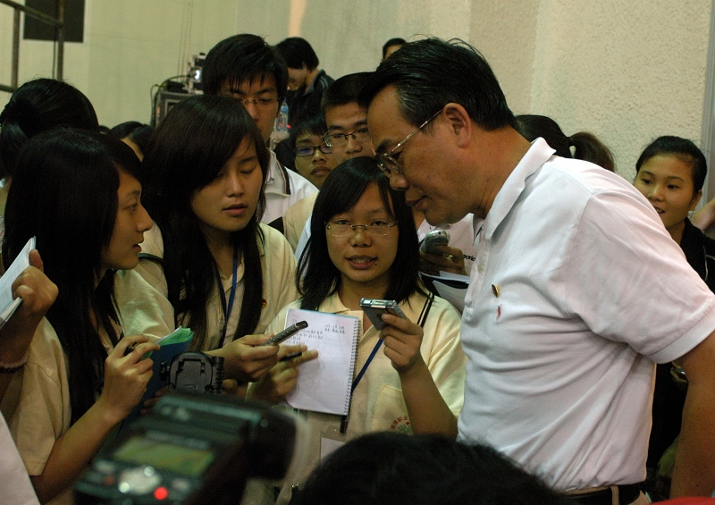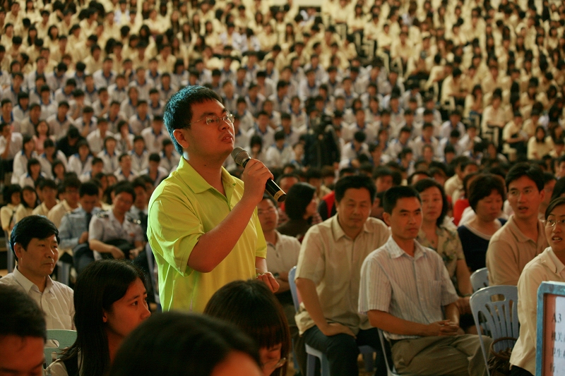 接着,刘海书记和与会青年进行现场互动交流,深入了解青年对推动顺德科学发展的心声和诉求,为顺德青年释疑解惑,我院学生积极与刘海书记进行交流。他们说,听了刘海书记的辅导报告受益匪浅,认为他的阅历丰富、知识面广,在2009全民阅读活动中,同学们想了解哪一本书对刘海书记的人生影响最大。刘海书记笑着回答说,读书是一种乐趣,他非常喜欢车尔尼雪夫斯基的《怎么办》和拜伦、普希金等的诗歌,并讲述了自己少年读书学习的故事,激励大家“读万卷书,行万里路”。我院另一位同学则提出如何推动顺德“科学发展、先试先行”的问题。刘海书记认为我们首先要踏实做好自己的事情,比如交通建设、推动广佛同城、产业升级换代、民生建设等工作。刘海书记的回答赢得了现场青年的热烈掌声。
