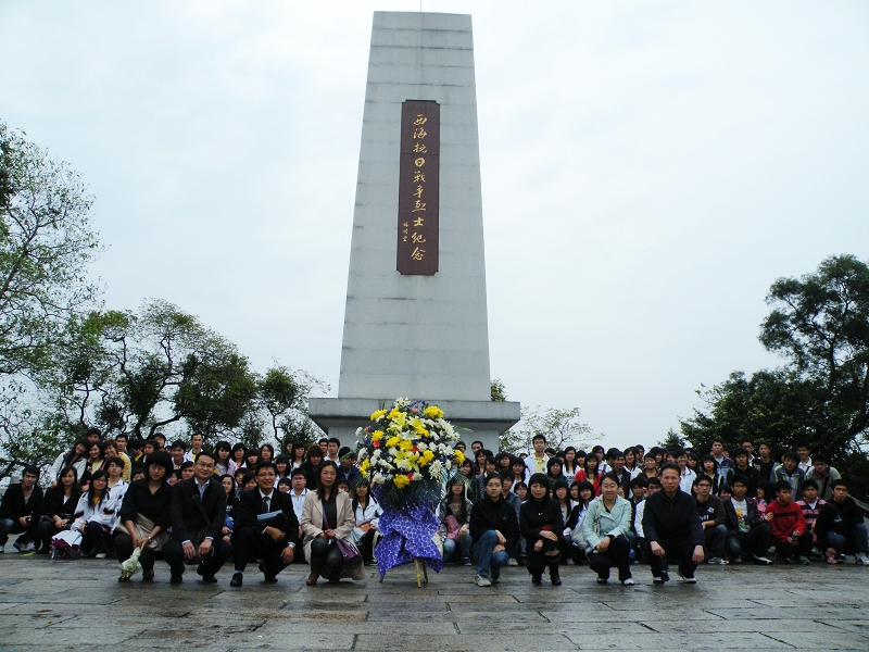 下午2点30分,师生们首先来到西海抗日烈士陵园凭吊革命烈士。在巍峨耸立的纪念碑前,汤恺老师主持了瞻仰仪式。同学们排着整齐的队形向烈士们默哀致敬,学生代表向纪念碑敬献花篮寄托哀思。董同彬老师发表了即兴讲话,希望同学们牢记历史,为中华民族的伟大复兴而努力学习。仪式结束后,同学们来到烈士陵园的第一、二、三、四展厅,认真阅读历史资料,细心瞻仰一件件历史文物。大家对抗战中珠江纵队革命烈士的英雄事迹有了深入的了解,他们为革命英烈的英雄壮举而深深震撼。