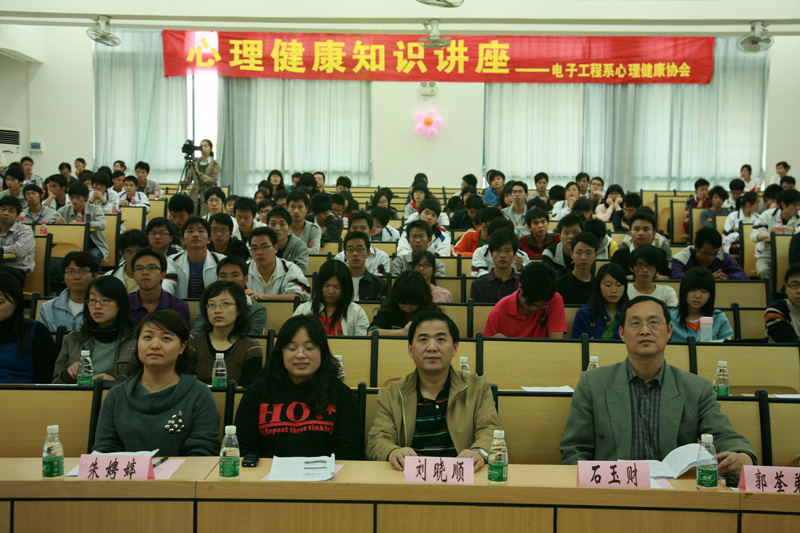 结合学校关于加强学生心理健康教育和安全工作的相关会议精神,在学校党委宣传部、学生处和心理健康与咨询中心的大力支持下,4月1日下午,电子工程系在教学楼11-102室组织了一场心理健康知识讲座。学院党委宣传部刘晓顺部长、校心理健康与咨询中心袁一平主任、李怡和老师、朱娉婷老师、各系(二级学院)负责心理健康的辅导员以及电子工程系党总支石玉财书记、全体教师和近200名学生参加了讲座。
