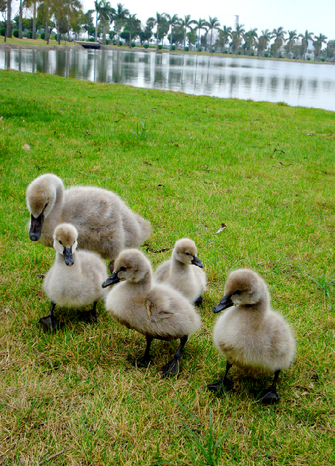 2003年初夏,由相关单位惠赠,我院拥有了五只天鹅(四黑一白),经过总务处工作人员几年的精心培育,加上碧桂园湖优雅的生态环境,和我院良好的人文环境,天鹅在此“乐不思蜀”,除了每天在此开心的向人们展示“她”动人的鹅姿以外,还不忘繁衍,家族一天天的在壮大。至2008年年底,家族已增添了四位成员。2009年春,更是大幅度的“扩招”,一下子增添了五位新成员,“她们”似乎懂得要与学院发展同步,“她们”似乎明白要以实际行动为学院十周年校庆献礼。