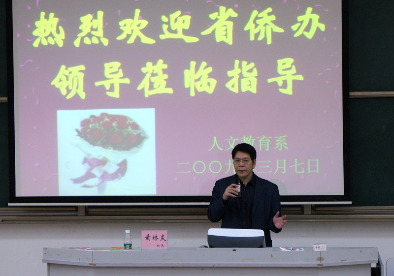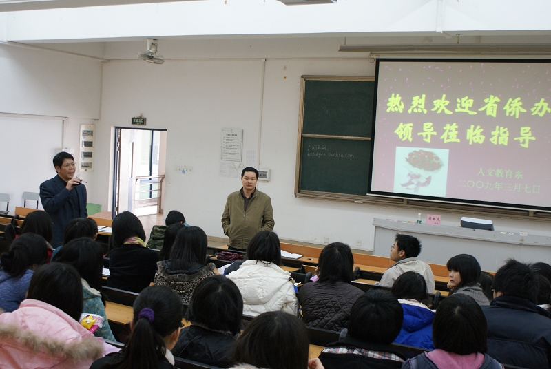 3月7日,广东省侨办文宣处黄林炎副处长应人文教育系之邀莅临我院,就招募赴东南亚国家“弘扬中华文化志愿者”事宜对初等教育04级毕业生做报告。会后,毕业生踊跃报名。人文教育系共有16位优秀志愿者通过前期筛选,日前已动身前往华南师范大学参加最后一轮面试。
