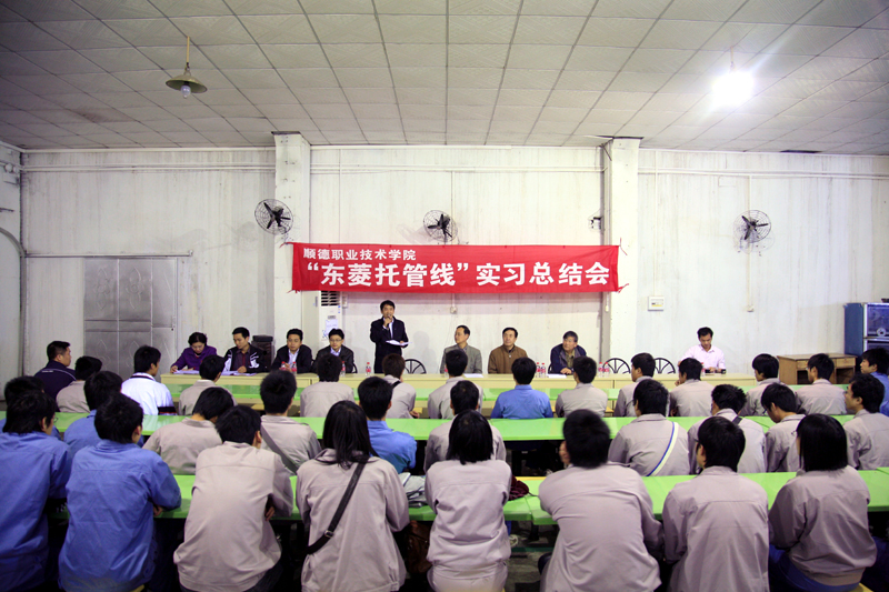 为研究探索“东菱托管线”这种创新的校企合作模式对高职学生实践能力培养与职业素养的养成所起到推动与促进作用,总结校外实践教学工作取得的成绩和存在的问题,3月13日下午,电子工程系在东菱凯琴集团广东省新宝电器股份有限公司电子分公司举行了“东菱托管线”第一批实习生实习总结会。新宝电器股份有限公司电子分公司陈绍波总经理、谭正兵高级经理、佘希武经理、李祥林科长、学院督导组吴吉波教授、电子工程系全体系领导、教务处、党委宣传部相关人员以及2008级应用电子(1)班的48名学生参加了会议。会议由电子工程系实训基地负责人邱昌辉老师主持。