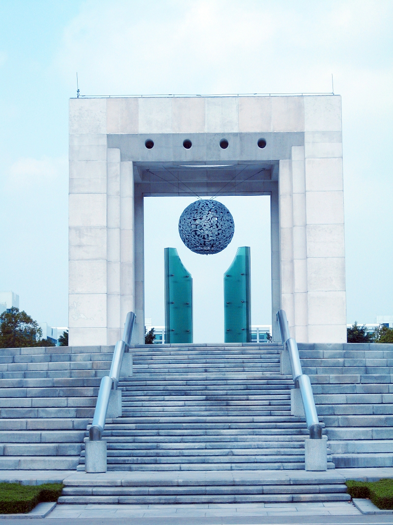 我院标志性建筑之一的智慧门,其核心部分——智慧球,6年来,因受风雨侵蚀和阳光紫外线辐射,昔日美丽、象征智慧之心的球体变得锈迹斑斑、污垢积聚,贴在外表的银箔纷纷脱落,体内的电机和转轴严重锈蚀,球体显得容颜失色。