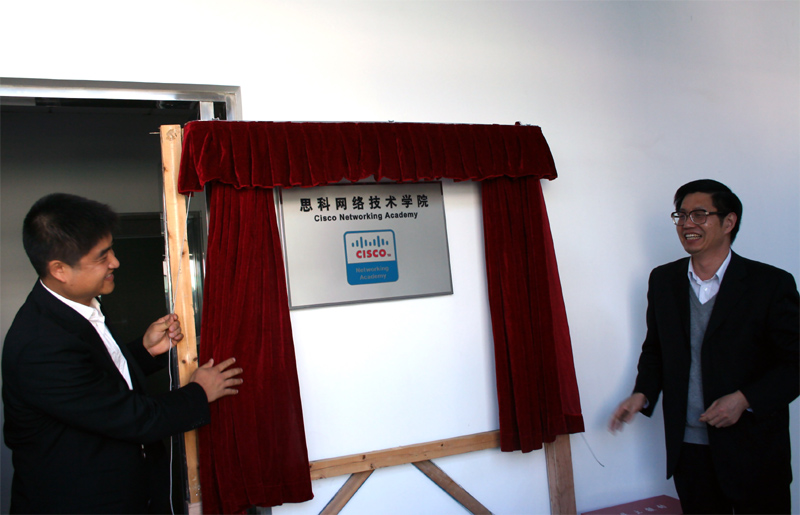 在揭牌仪式上,邹时智副院长首先代表学院对思科公司大力支持表示衷心感谢,对与作为计算机网络业界的龙头老大、技术全球领先的国际著名企业合作,共同成立思科网络技术学院的工作给予了充分肯定,要求学院的师生要充分利用好思科网络技术学院这一资源,把教学、科研和社会服务做得更好。邓华总监简要介绍了Cisco公司总体情况,表示愿意并有社会责任利用Cisco公司先进的技术和丰富教学资源等与我院一起致力于共同为社会培养掌握先进技术的计算机网络人才。最后,邹副院长和思科邓总监为思科网络技术学院(Cisco Networking Academy)揭牌。