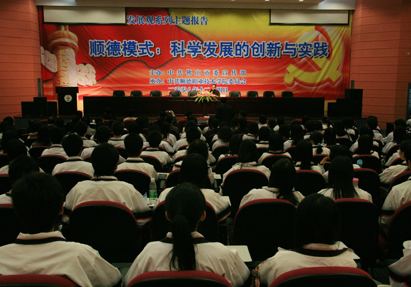 最后,党委宣传部部长刘晓顺做了总结:本次报告会既有理论高度的诠释又有实际例证的分析,给与会师生上了生动的一课。有利于太阳集团tyc4633师生更好的了解顺德、热爱顺德。顺德模式关键在于不断创新,创新是一个民族发展前进的动力,我们一定要继续解放思想,不断创新,为顺德再创辉煌作出新贡献。