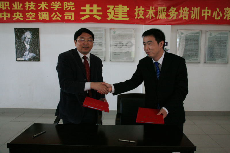 该培训中心是由我院提供所需场地、工程配套资金、相关教学环境及师资,美的商用空调设备有限公司按照中央空调工程设计、安装施工、维修和工程管理的需要,提供价值近80万元的中央空调设备、空调设备组件、部分工具、培训材料和技术资料共同建成。
