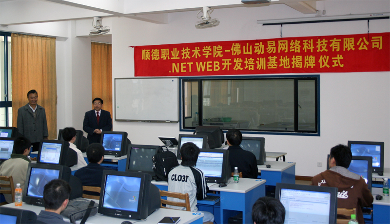 12月9日,我院与佛山动易网络科技有限公司.NET WEB开发培训基地揭牌仪式在我院隆重举行。揭牌仪式由计算机技术系副主任常理民主持,佛山动易网络科技有限公司CIO粟维胜、学院副院长陈粟宋、计算机技术系主任陈遵德、计算机技术系部分教师和动易班全体学生出席了仪式。